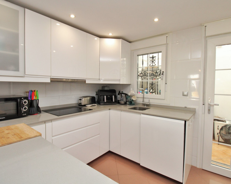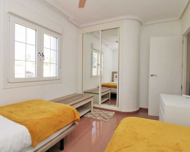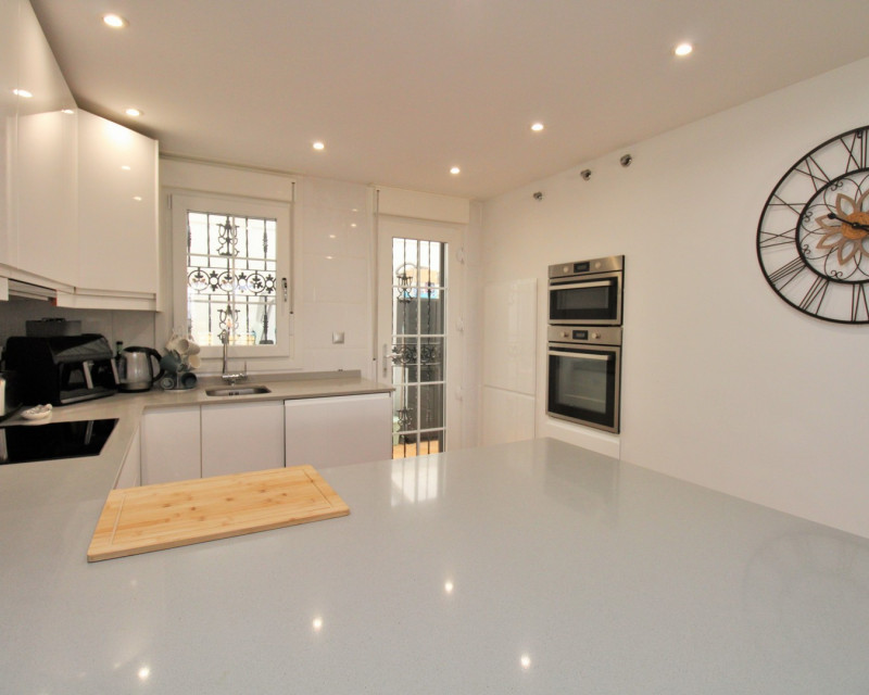 Located in the popular residential community of Costa Flamenca Golf in Los Dolses, this beautifully updated 3-bedroom, 2-bathroom semi-detached villa offers a superb balance of comfort, style, and outdoor living. The property is ideally positioned within easy walking distance of La Zenia Boulevard, local bars and restaurants, and just a short trip to the award-winning beaches of the Orihuela Costa — making it perfect as both a permanent home or an exceptional holiday getaway. The villa has been thoughtfully renovated in recent years, including new windows and external doors, a stunning remodelled main bathroom, and the addition of a private swimming pool—ideal for cooling off during the summer. The interior is bright, inviting, and ready to move straight into, with furniture negotiable. The ground floor features a double bedroom, a modern shower room, and a spacious open-plan lounge filled with natural light. A pellet burner creates a cosy atmosphere in the cooler months, while the stylish modern kitchen opens to a practical rear terrace currently used as a utility and storage space. On the first floor are two generous double bedrooms, including a master bedroom with its own private terrace overlooking the pool—an ideal spot for morning coffee or evening relaxation. The main bathroom on this level has been beautifully refurbished and includes a contemporary walk-in shower with quality fixtures. Additional comforts include air conditioning throughout, well-maintained outdoor spaces, and private parking. With its prime location, upgraded finish, and inviting outdoor areas, this is a home you can enjoy from day one.