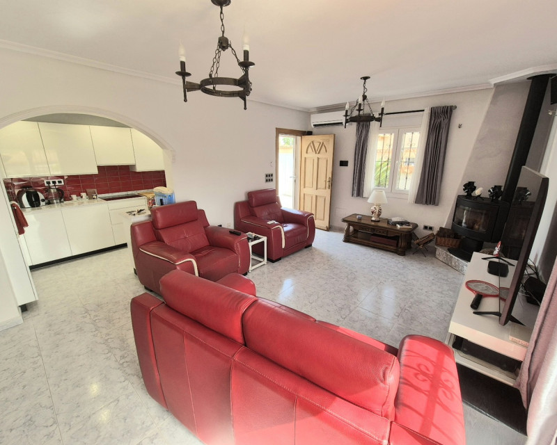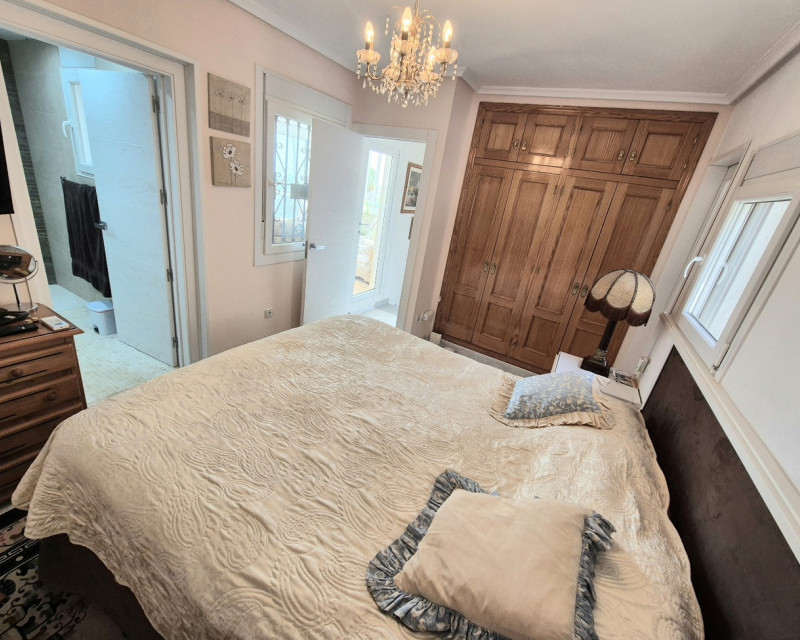 Stunning 3-Bedroom Detached Villa with Private Pool in Las Comunicaciones, San Miguel de Salinas. Located in the highly sought-after area of Las Comunicaciones in San Miguel de Salinas, this beautifully presented detached villa offers a perfect combination of comfort, privacy, and Mediterranean charm. With 3 spacious bedrooms and 2 modern, recently renovated bathrooms, the property is ideal for families, holidaymakers, or anyone looking for a peaceful escape in the sun. The home features a bright and modern kitchen with built-in appliances, living area with a log fire, and air conditioning throughout for year-round comfort. On the ground floor there are 2 bedrooms, both with external access to the rear terrace, and one of the stunning new bathrooms. Upstairs, the master bedroom includes an ensuite bathroom and has direct access to an additional room that can be used as a fourth bedroom, dressing room, office, or storage space, offering flexibility to suit your needs. Two balconies and a sunroom provide plenty of space to relax and take in the stunning views of the pink salt lakes and the Mediterranean sea. Outdoor living is at the heart of this property. The villa boasts generous outside space, including a private swimming pool, a tranquil fish pond, multiple seating areas and even a built-in pizza oven, making it ideal for entertaining. Additional features include built-in wardrobes, double glazing, a utility room, and a private driveway with electric gates for added convenience and security. The property is offered part furnished and is move-in ready, allowing you to settle in and start enjoying the Spanish lifestyle immediately. This fabulous villa is just a 2 minute drive to Phoenix International School and less than a 5 minutes’ drive from the vibrant town of San Miguel de Salinas where you can find all the amenities that you require. Sought after Spanish schools, 24hr medical centre, church square, banks, pharmacies, municipal pool, football ground and a fantastic selection of local and international bars and restaurants. As a Spanish town it celebrates the many colourful fiestas throughout the year and there is a weekly produce market on a Wednesday. If golf is on your agenda, then you will not be disappointed as you have 4 Prestigious golf courses to choose from within a 5-10 minute drive. This is a rare opportunity to own a well-maintained, versatile home in one of the most desirable areas of the Costa Blanca. Early viewing is highly recommended.