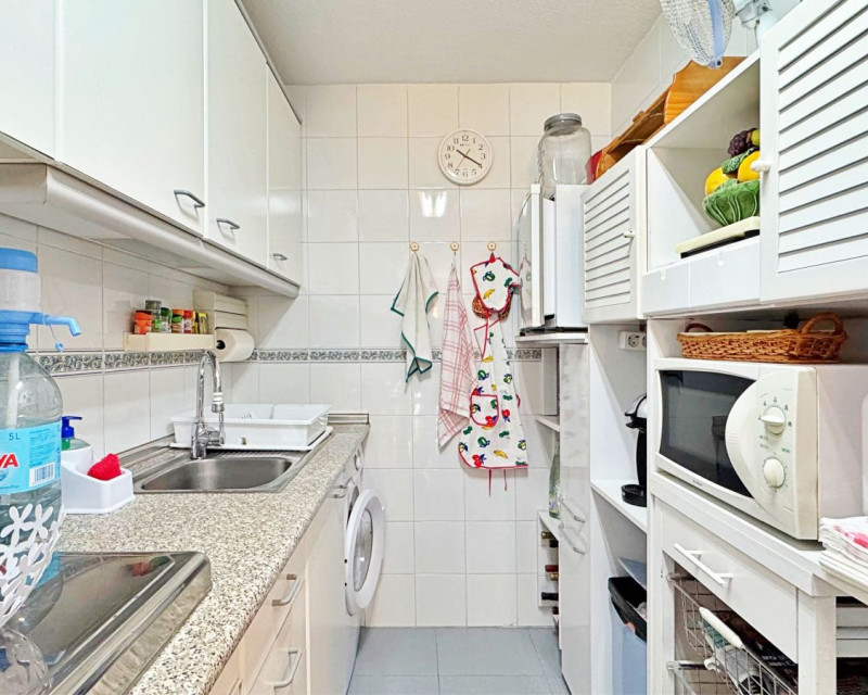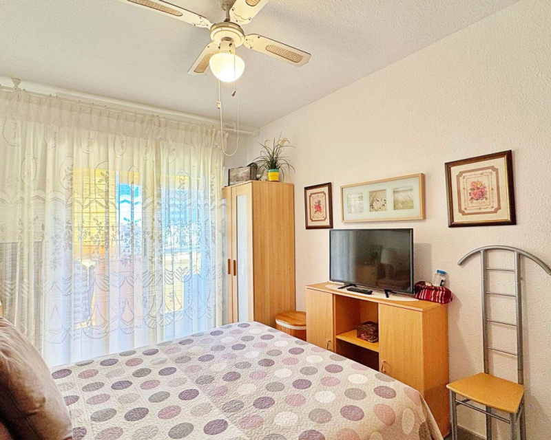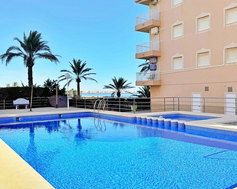 Apartment for sale in Rocío del Mar, Torrevieja, located in an exclusive residential area next to Punta Prima, just 200 metres from the sea. This 43 m² property is part of a private urbanisation with a communal swimming pool, offering a quiet and family-friendly atmosphere all year round. The apartment is in excellent condition and benefits from a south-facing orientation, ensuring natural light throughout the day. It features a bright living-dining room with access to a glazed terrace perfect for enjoying the Mediterranean climate, a fully equipped kitchen, one double bedroom with fitted wardrobe, and a complete bathroom with bathtub and natural ventilation. The terrace has pleasant side sea views and enough space for a table and chairs. Additional features include air conditioning in the living room, awnings on the terrace, tiled floors, lift in the building and adapted access. The property is delivered ready to move into. The private complex offers a large communal pool surrounded by sunbathing areas and well-kept gardens. Its privileged location, only 200 metres from the sea and within walking distance to supermarkets, restaurants, public transport and leisure areas, makes it an ideal option for those seeking comfort and convenience. This apartment in Rocío del Mar, Torrevieja, represents an excellent purchase opportunity — perfect as a permanent residence, holiday home or investment with high rental potential in one of the most desirable coastal areas of the Costa Blanca.